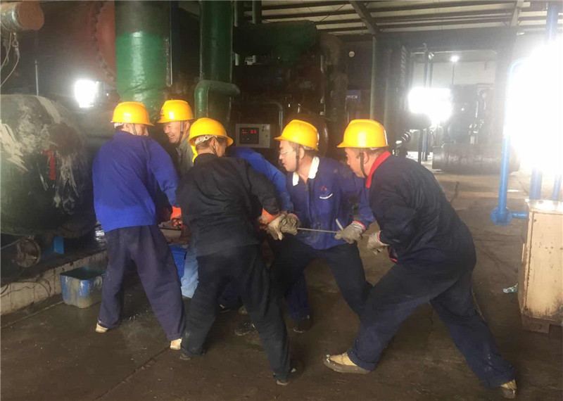 一車間職工齊心協(xié)力清理冰機換熱器