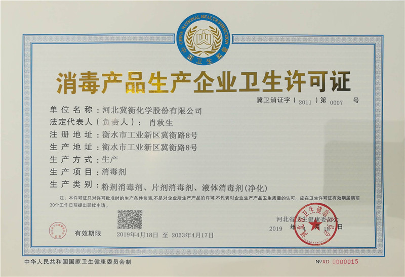 近日,河北省衛(wèi)生健康委員會批準(zhǔn)了我公司衛(wèi)生許可證的延期申請書,新的《衛(wèi)生許可證》有效期限到2023年4月17日。
