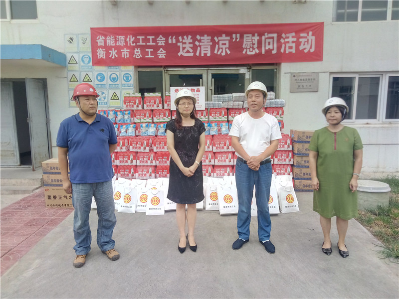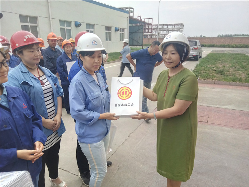 8月22日,衡水市總工會黨組成員、經(jīng)審委員會主任劉莉,經(jīng)審辦主任楊新宇代表省能源化工工會、市總工會到冀衡集團開展“送清涼”慰問活動,集團工會主席韓紅喜接待了慰問組成員一行,在慰問活動現(xiàn)場,上級工會領(lǐng)導(dǎo)對我集團職工戰(zhàn)高溫、斗酷暑,不畏困難的精神表達(dá)了敬意,并為大家送上礦泉水、毛巾、冰糖、藿香正氣水等防暑降溫慰問品,讓高溫下堅持生產(chǎn)的職工們親身感受到了上級工會組織的關(guān)愛,大家表示一定要努力工作,為企業(yè)發(fā)展做出更大的貢獻。