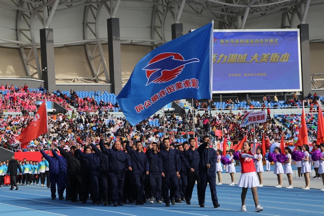 10月26日上午,以“活力湖城,大美衡水”為主題的衡水市第四屆運(yùn)動會在市奧體中心體育場開幕,這次運(yùn)動會是全市規(guī)模最大、水平最高、影響最廣的綜合體育賽事。市長吳曉華致辭并宣布開幕。省體育局巡視員張綽庵致辭。市領(lǐng)導(dǎo)王金剛、李洪林、鈕興輝、韓志剛、劉永軍、李建剛、崔建發(fā)、程蔚青、趙維東、馬衛(wèi)、韓克儉、蘇振武、姚會亭出席開幕式。副市長崔海霞主持開幕式。來自各縣市區(qū)、市直各部門、中省直駐衡單位、企事業(yè)單位 、各大中專院校、社會團(tuán)體的70支代表隊和11個團(tuán)體操展演單位,以及由各縣市區(qū)提供的13輛花車參加了開幕式。冀衡集團(tuán)43名職工組成的代表隊參加了開幕式。
