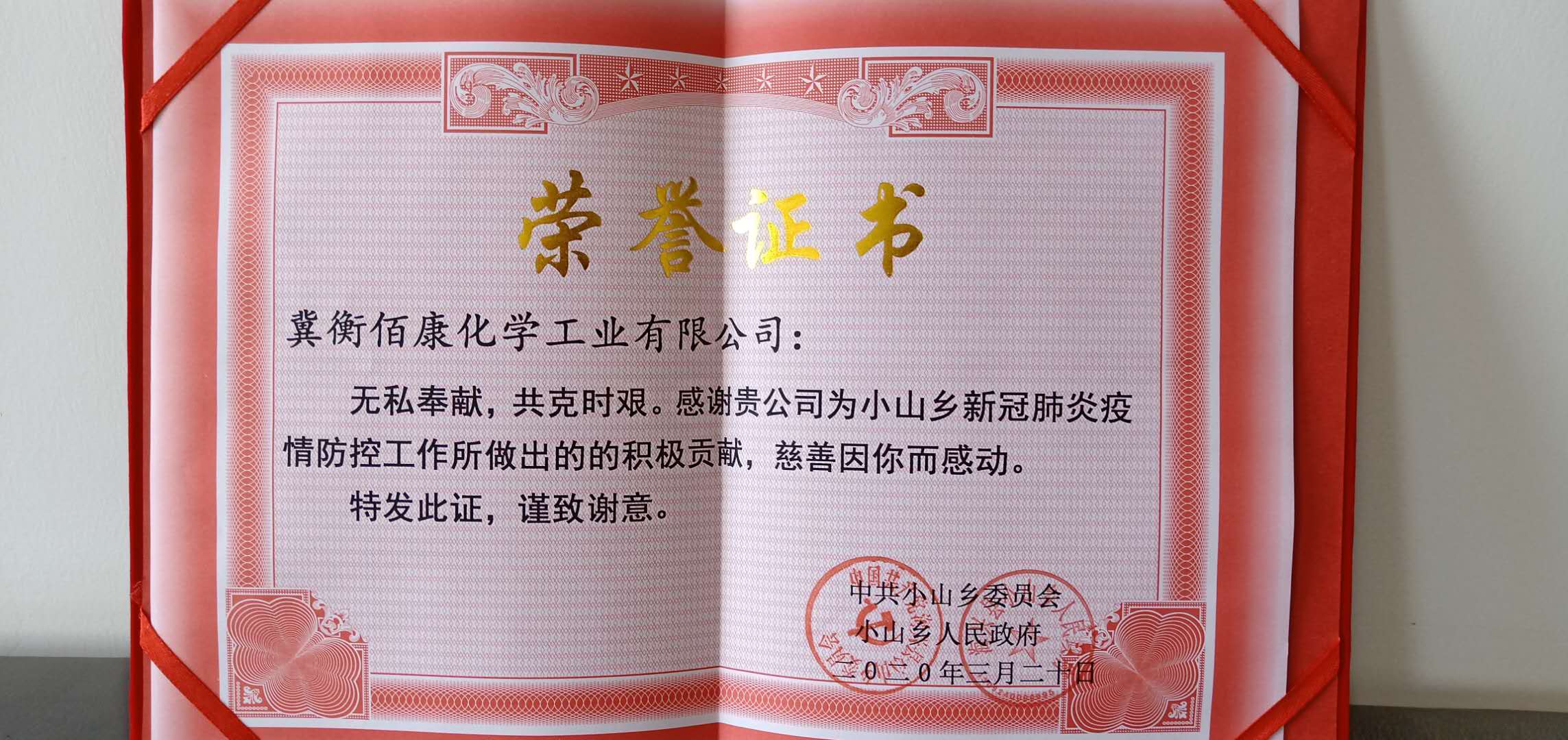 近日,海興縣小山鄉(xiāng)黨委、鄉(xiāng)政府為感謝佰康公司在疫情防控期間,積極為小山鄉(xiāng)防疫捐贈消毒用品頒發(fā)榮譽證書,佰康公司表示,作為一家海興縣的企業(yè),盡自己最大的努力協(xié)助當(dāng)?shù)乜箵粢咔椋瞧髽I(yè)義不容辭的責(zé)任,今后佰康公司將堅持疫情防控和安全生產(chǎn)兩手抓、兩手硬的要求,確保實現(xiàn)疫情防控和安全生產(chǎn)的雙勝利,為海興縣地方發(fā)展作出應(yīng)有的貢獻!