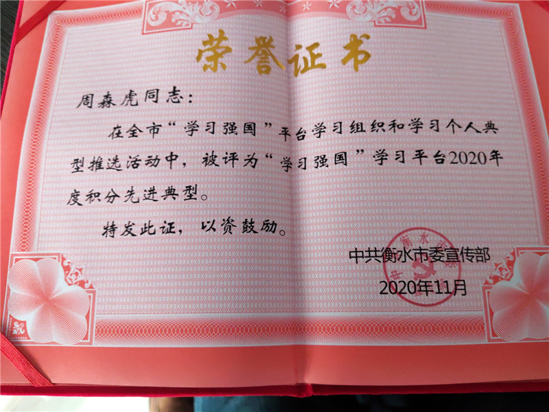 “‘學(xué)習(xí)強國’這個學(xué)習(xí)平臺,內(nèi)容權(quán)威、內(nèi)涵豐富、特色鮮明,我覺得受益匪淺,已經(jīng)‘上癮了’!”化學(xué)公司一車間副主任周森虎表示,從剛開始的閱讀文章、觀看視頻、答題到對平臺深入了解之后的上癮、依賴,現(xiàn)在“學(xué)習(xí)強國”已經(jīng)成了他每天的必修科目,到目前他個人累積學(xué)分已達到32864分,被衡水市委組織部授予“學(xué)習(xí)強國”學(xué)習(xí)平臺2020年度積分先進典型。